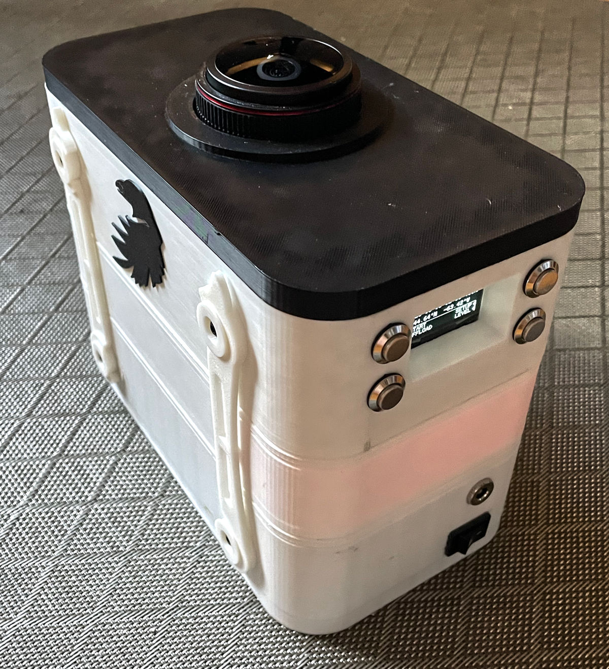 Using a RPI Zero 2W, AurorEye mini can run all night with a small lithium ion battery pack and report to the local WIFI network with a hosted site. With a 256GB micro SD card, it can store around 100 8 hour nights of imagery at high resolution (2000px square). Because the components are so small, the whole unit fits inside the acrylic weather dome.